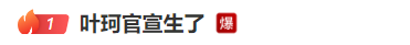 8月7日,“叶珂官宣生了”词条登上社交媒体热搜榜第一。