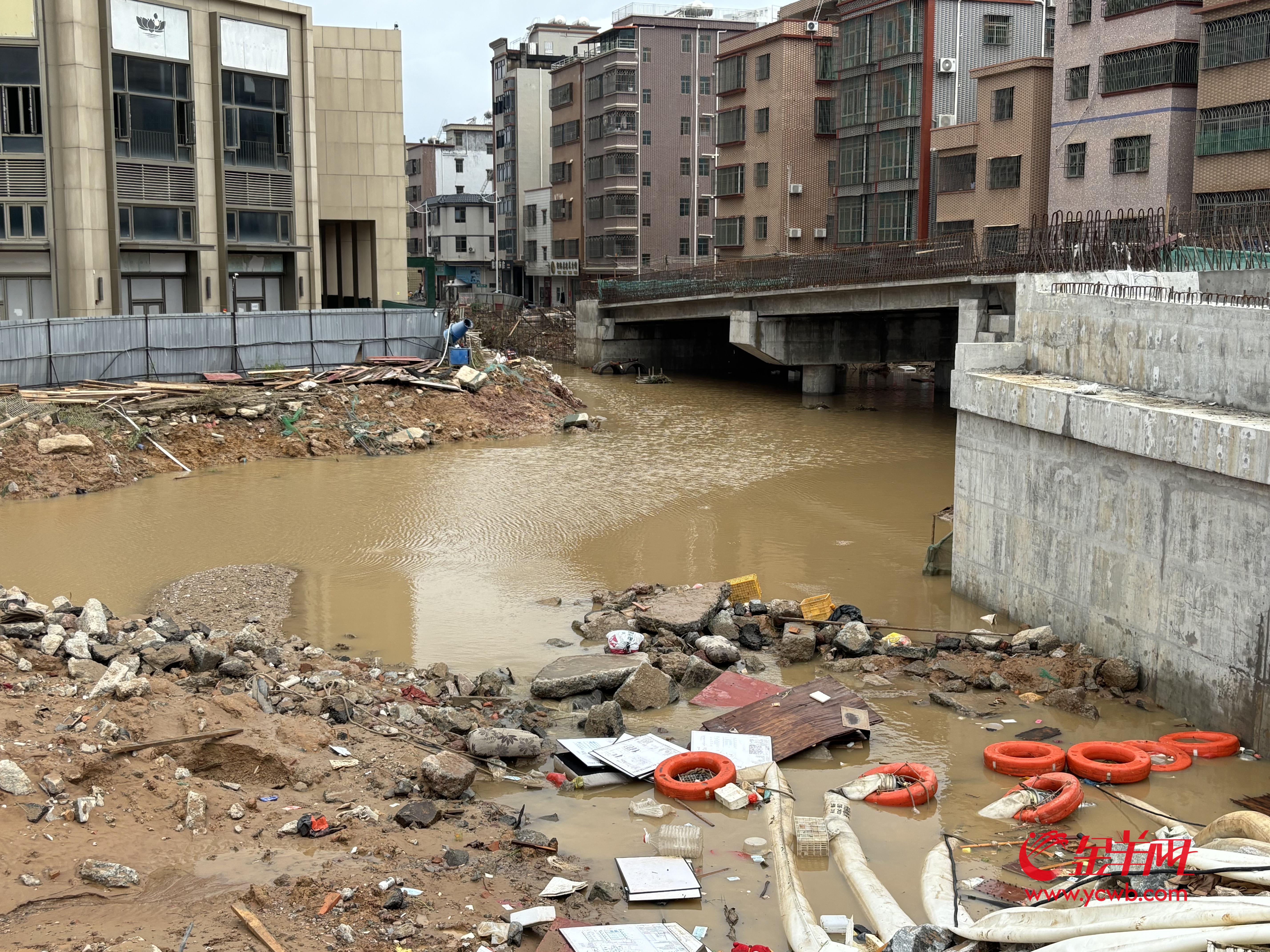 记者获悉,经全力抢修,6日18时许,谢岗涌堤围护岸滑塌处已完成底部合龙,预计7日可完成全面合龙、堤围修复及河道加固工作。