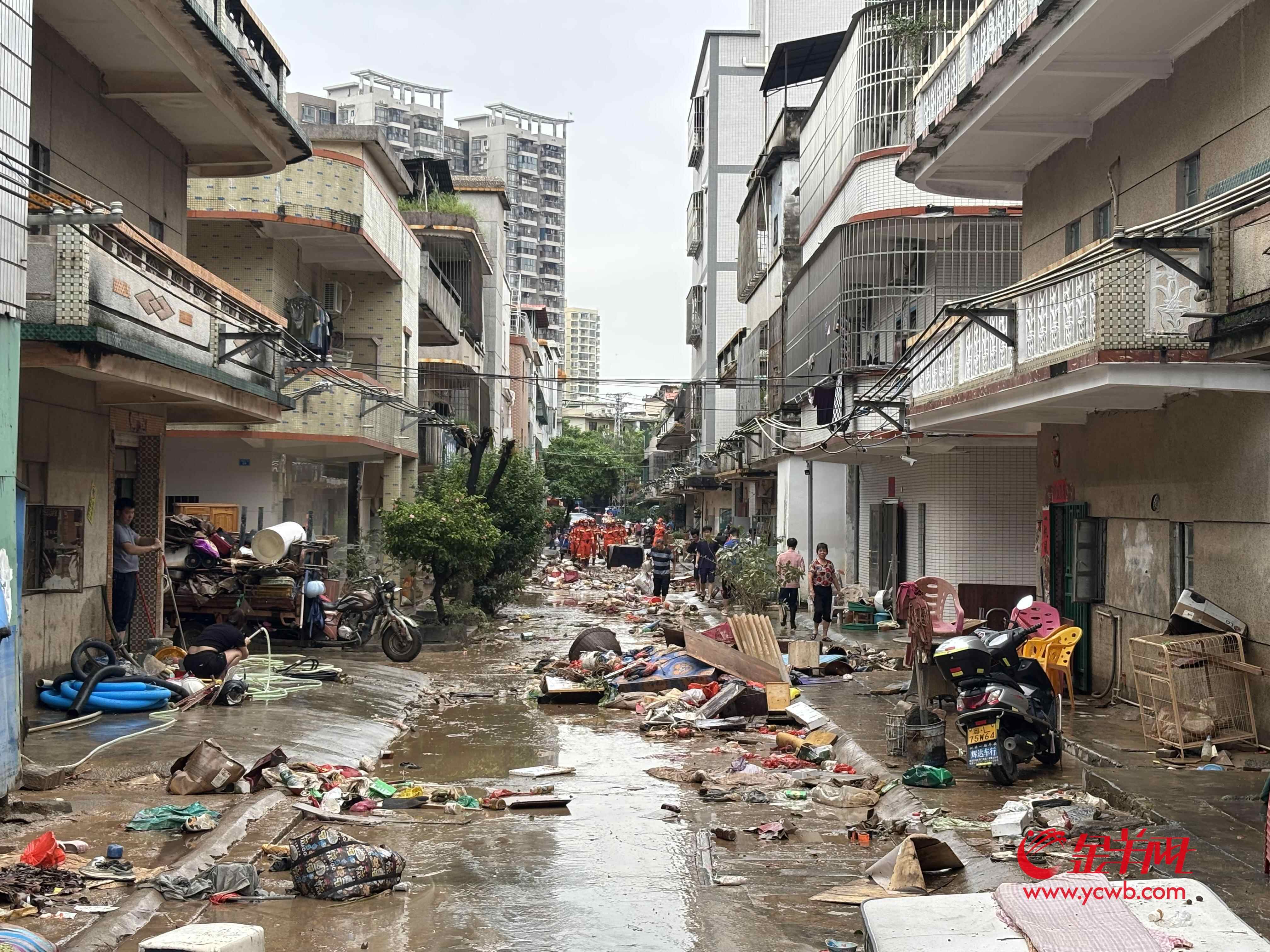 在河的对岸,桥背永兴路居民、梅州人戴先生一大早就和赶来帮忙的老乡一起,将仓库里泡坏的门窗一件件搬到街边。“先把能清理的清理出来,能修的尽量修,实在不行的就只能报废。生活总要继续,店铺也得尽快重新开张。”经营十余年,戴先生看着灾后满目疮痍的店铺与仓库,虽心疼却未显露颓态,“损失是肯定的,但只要人平安,一切都会好起来的”。