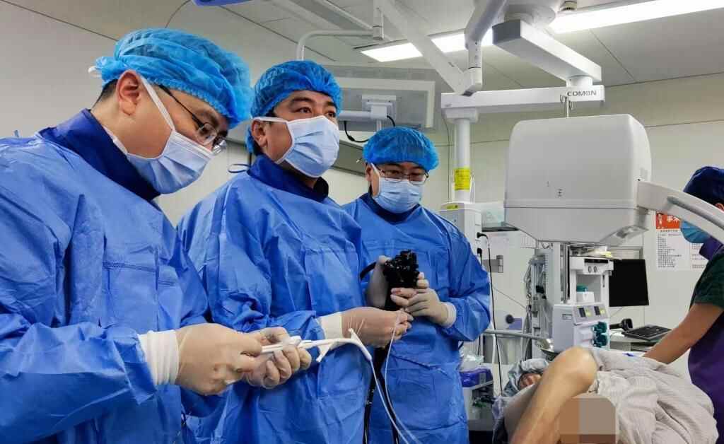 李凯(中)等医生一起为患者治疗。上海市静安区市北医院 供图