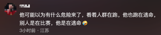 对此,有网友表示,他可能以为有什么危险来了,别人在比赛,他是在逃命。