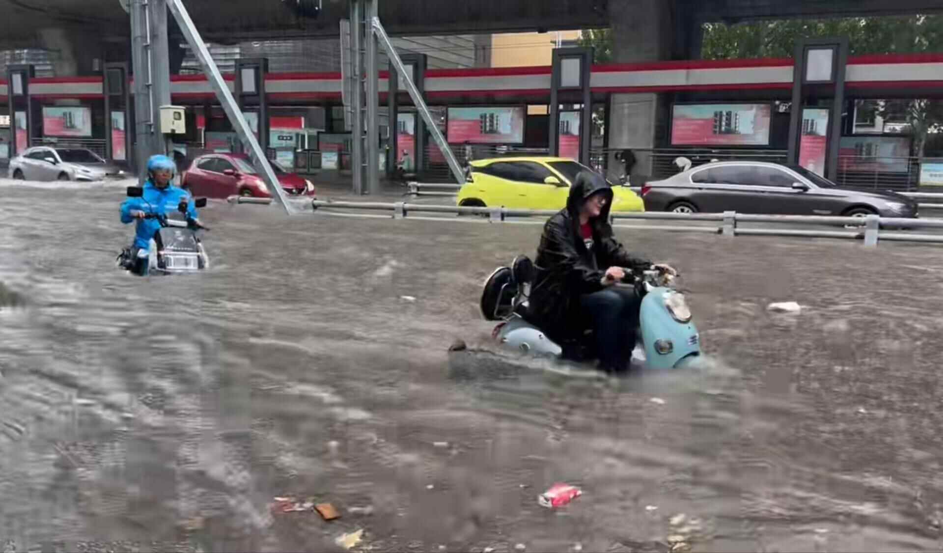 该公司旁一超市负责人向记者表示,大雨在11时许开始下,不到半个小时,高架桥下的路面就全部被淹,积水深度已经超过膝盖。到14时左右,天空还下着小雨,积水还没有退去,深度维持在大腿根部。
