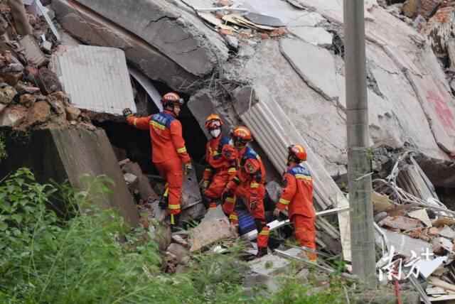 一位周边居住的大姐告诉南方+记者,她家住在山体滑坡的房屋对面,昨天早上起床后就在阳台看到对面两栋房屋歪斜,“希望里面的人能尽快被救出来”。