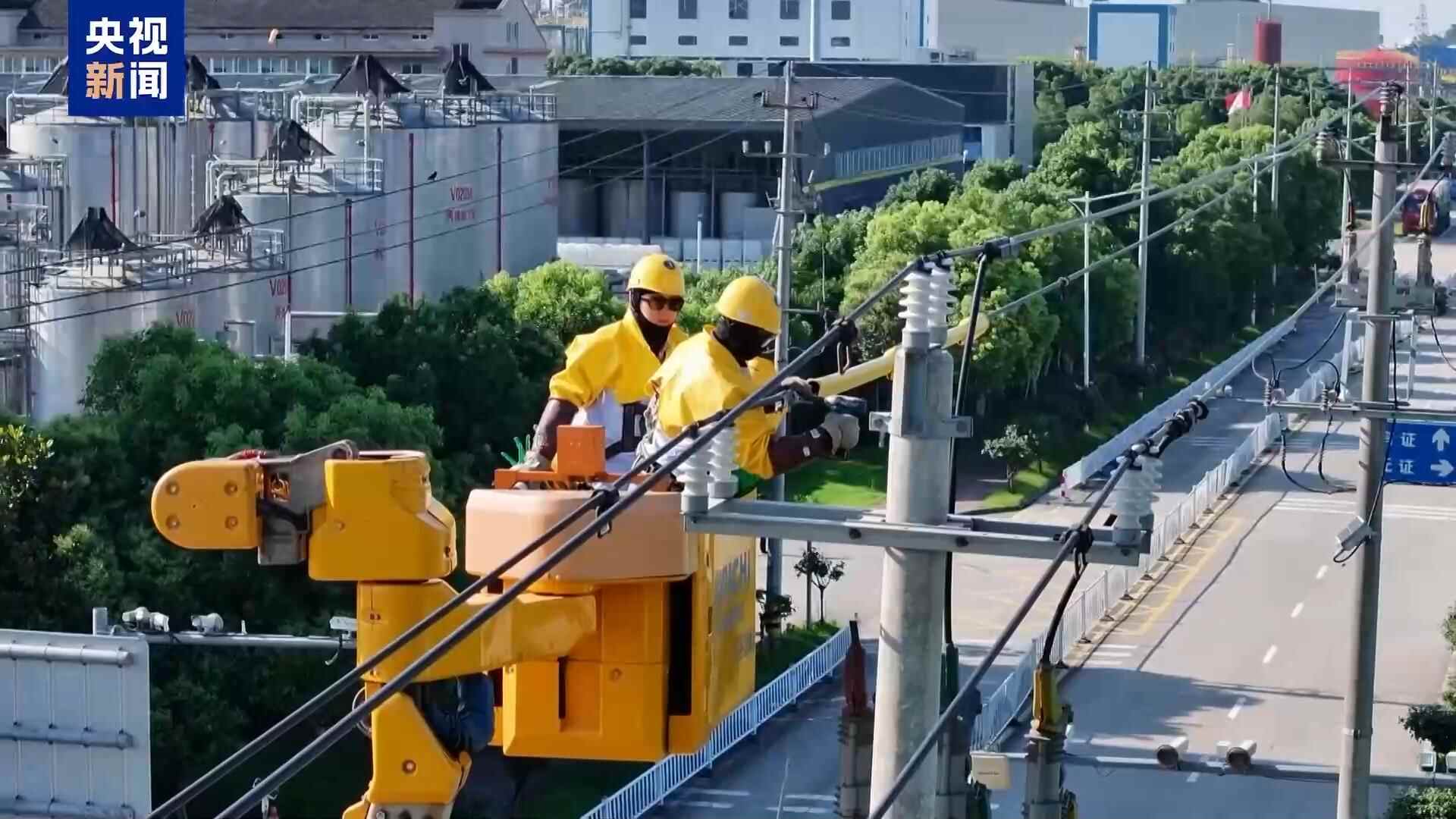 在浙江嘉兴,电力部门组织12支带电作业队伍同时在三个作业片区开展带电作业。在设备“不停电”的状态下完成检修、接引等工作。