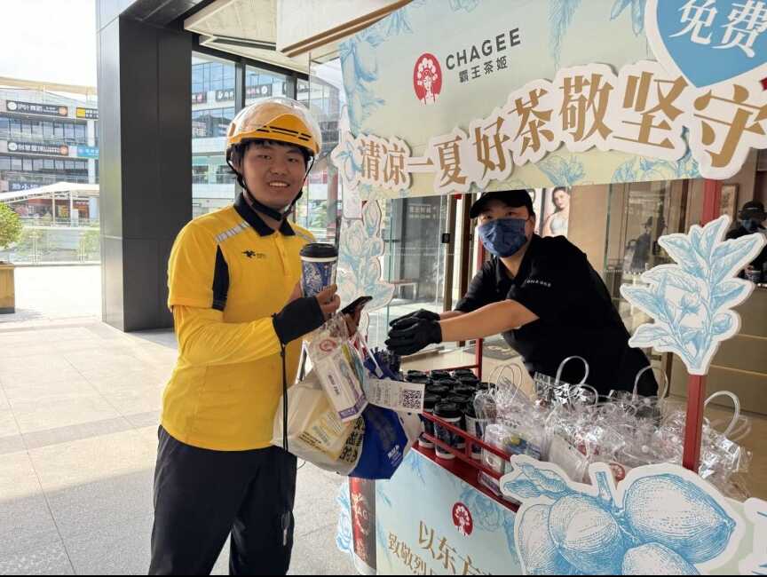 霸王茶姬则选择让“高温工作者”先甜。当下,全国各地仍高温不减,环卫工人、外卖骑手和快递员等工作者仍在街头奔波。霸王茶姬携各地子公司在全国36家门店开展“高温关怀行动”,向“高温工作者”发放茶饮和防暑包。