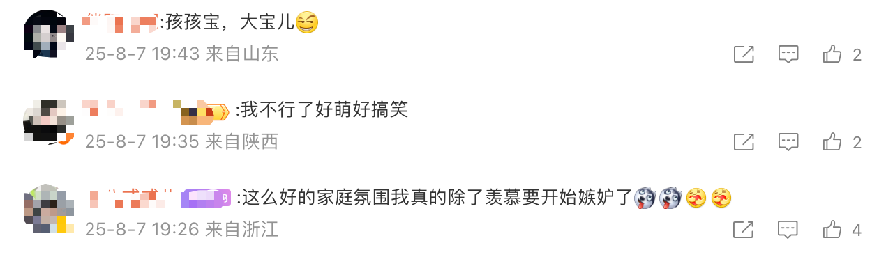 有网友表示:这么好的家庭氛围太让人羡慕了;还是东北人会花式宠娃。