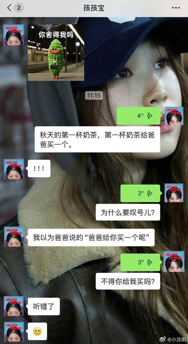 8月7日,小沈阳晒出的聊天背景也是沈佳润照片,小沈阳给女儿的备注为“孩孩宝”,互动中也调侃女儿是“漏风的小棉袄”,家庭氛围温馨有爱。