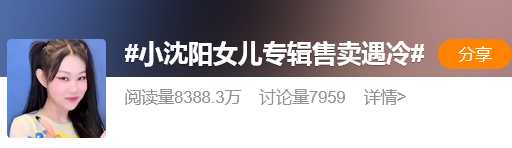 随后,小沈阳女儿专辑售卖遇冷的话题登热搜榜,引发关注。