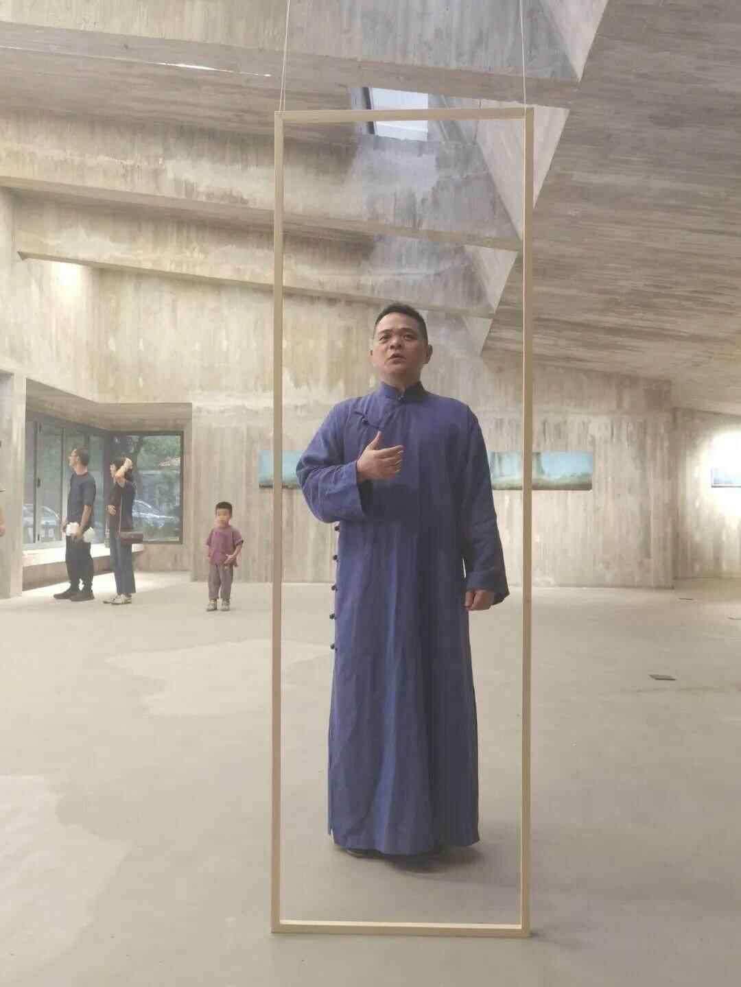 这个画框是颜长江搬来的,拟置于墙壁。我建议垂直立于馆中央。于是就有了这个框架:看见框架,打破框架——我对刘释之说,这才是我的策展人前言。