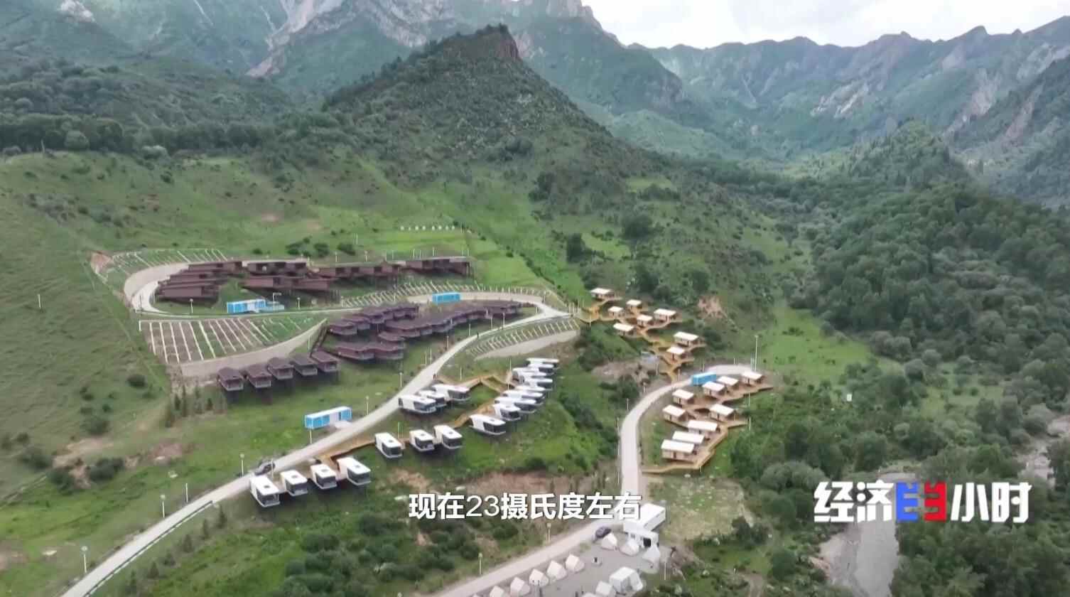 在青海,夏季温度只有20多摄氏度的西宁也迎来了避暑的游客。位于西宁市的群加国家森林公园,森林覆盖率高达79.32%,夏季平均气温仅在18℃左右,当地依托这份生态优势,打造了康养露营基地,错落分布在山野间。