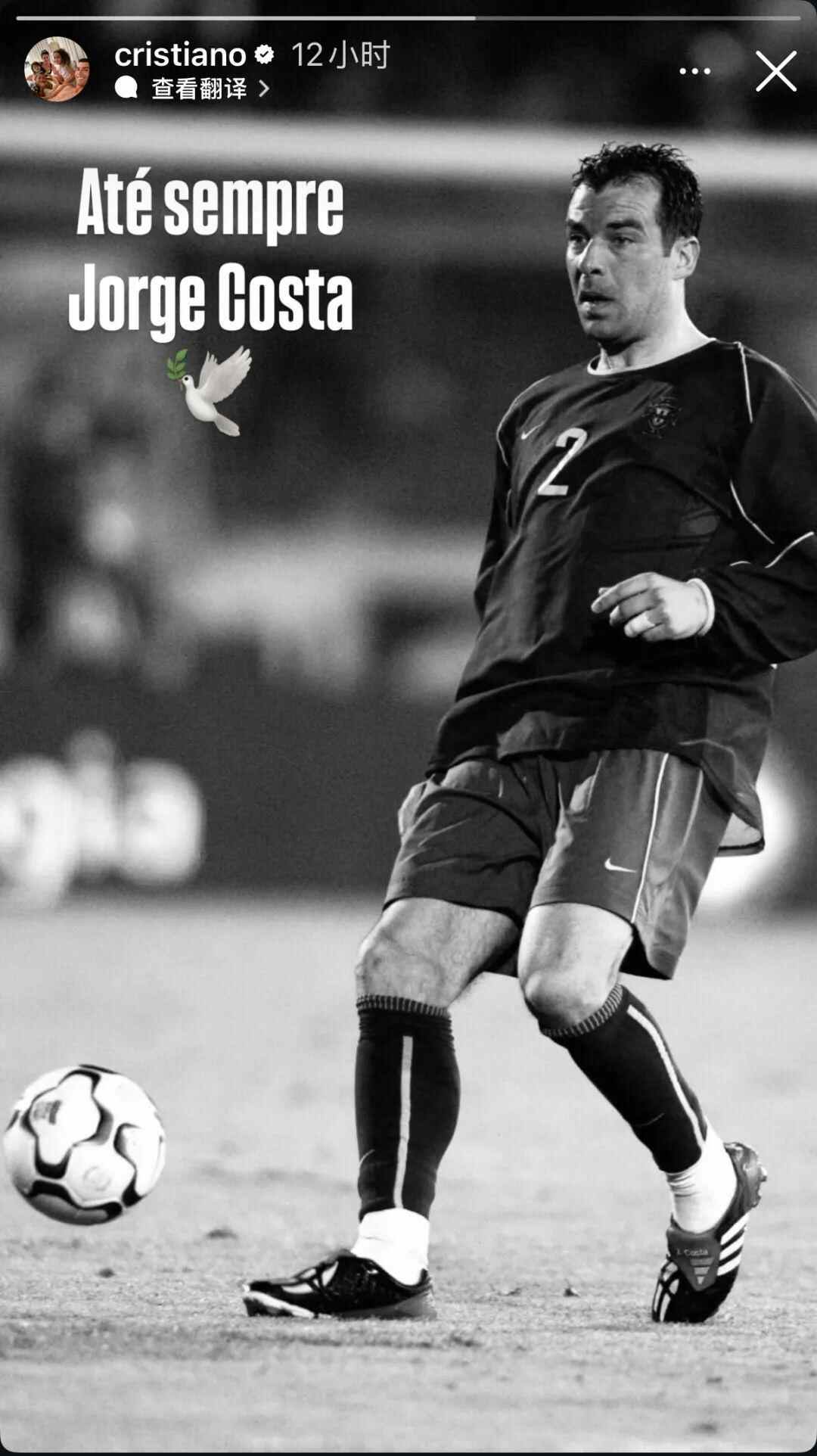 科斯塔去世后,C罗通过社交媒体发布照片,悼念这位葡萄牙足坛前辈。