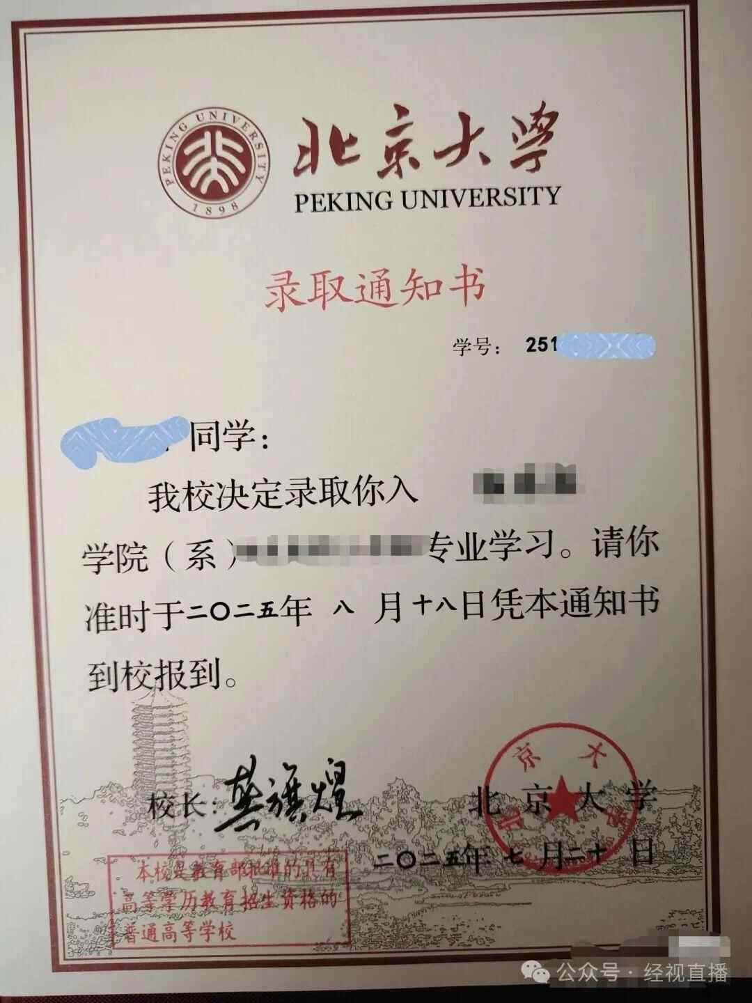 8月6日,有网友发帖指出北京大学录取通知书中两处表述存在语句问题,引发关注。北京大学回应称将接受网友建议并反馈相关部门,后续将研究改进。