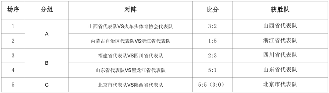 男子组成绩公告(小组赛第一轮)