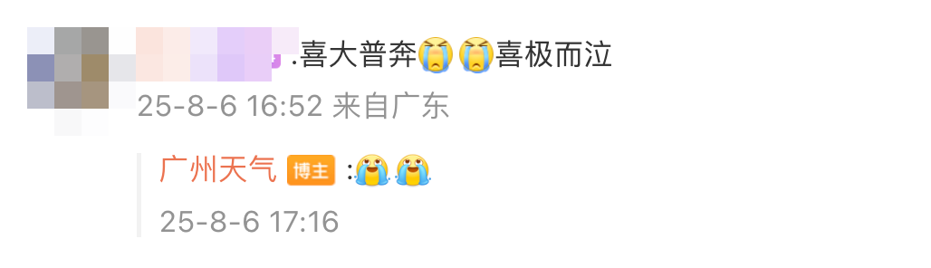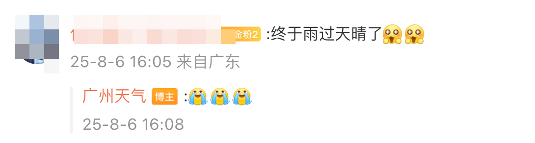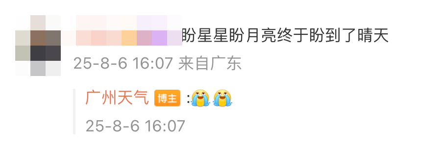 “这场强降雨终于快结束了!”“终于雨过天晴!”“盼星星盼月亮终于盼到了晴天!”“喜大普奔!喜极而泣!”……网友不禁接连对天气即将好转的消息表示喜悦。
