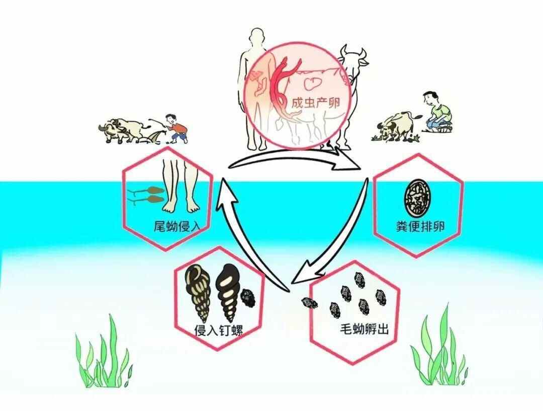 人如果接触了含有血吸虫尾蚴的水体——“疫水”,只需短短10秒,尾蚴就会迅速从皮肤钻入人体内致人感染。