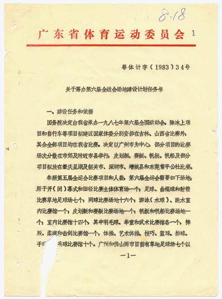 “天河体育中心的崛起,堪称广州城市发展的神来之笔。”广东省档案馆利用服务部工作人员段博介绍,广东省档案馆珍藏的《关于筹办第六届全运会场地建设计划任务书》记录了天河体育中心从征地到项目审批立项、从建设到落成的全过程,是解码天河乃至广州巨变的关键“城市记忆”。