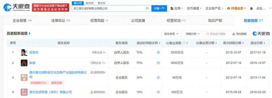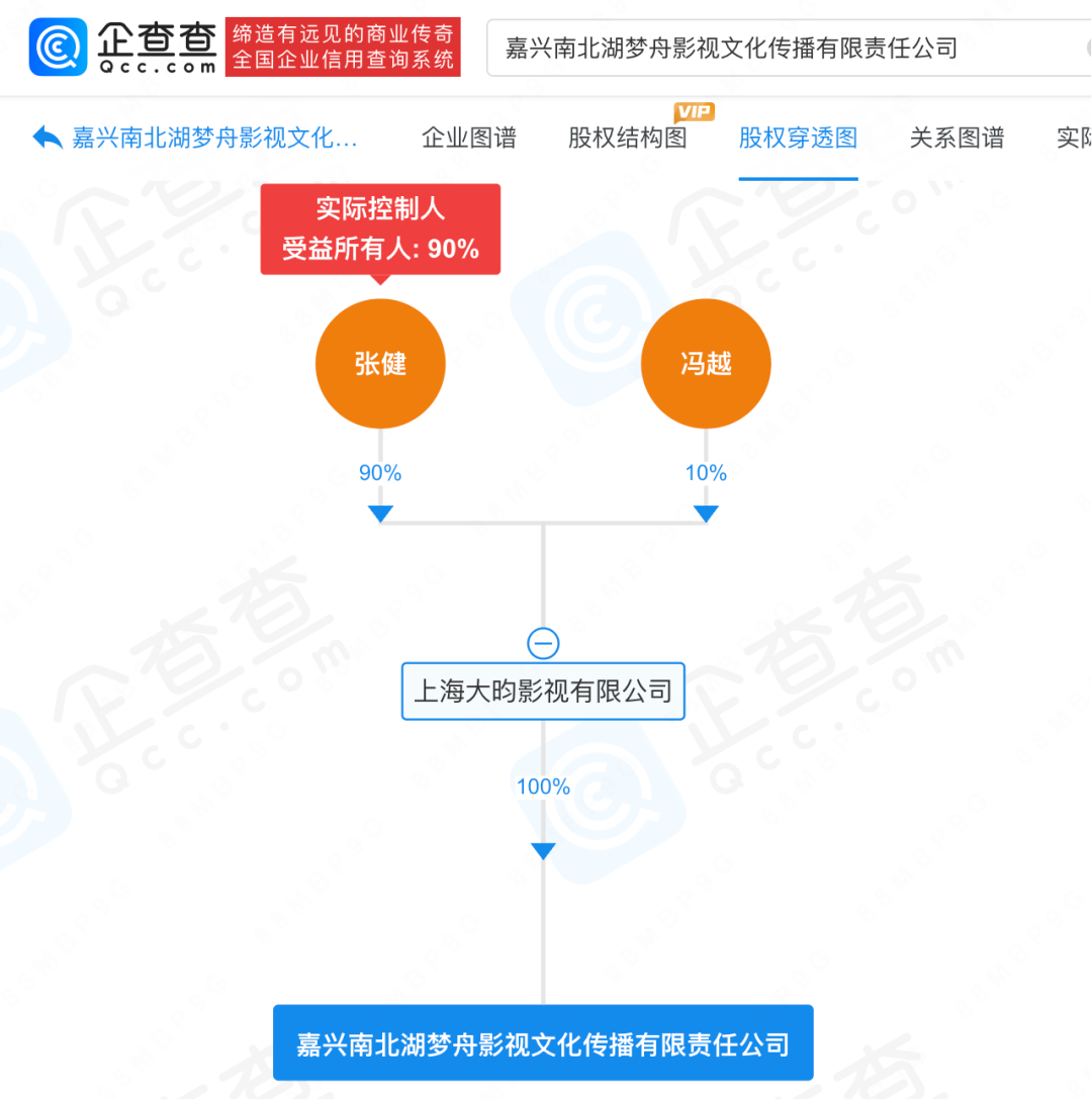 信息显示,嘉兴南北湖梦舟影视文化传播有限责任公司成立于2013年9月,张健担任法定代表人、执行董事,张健通过上海大昀影视有限公司间接持有该公司90%股权。目前,张健及该公司涉一起合同纠纷已被限制高消费。