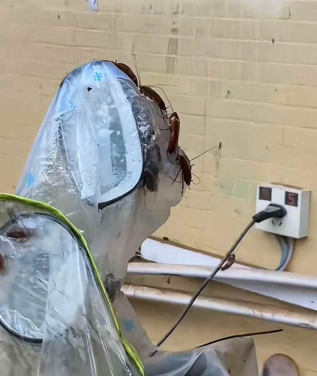 连日来,受持续暴雨影响,广东惠州惠阳区多地出现内涝险情。家在惠阳区白石村的林女士拍到让人头皮发麻的一幕,大批蟑螂爬进电动车雨罩避水。