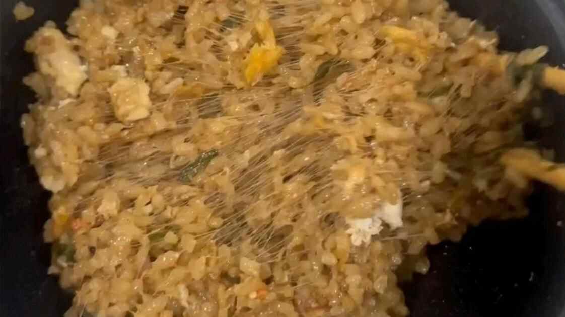 隔夜炒饭加热居然“拉丝”了 还以为是商家用了糯米 网友:原来是坏了 我还吃过 来源:#小羊拍客