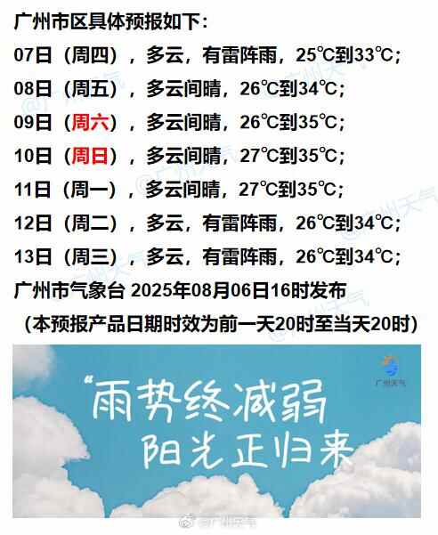 @广州天气 预计,今天还有雷阵雨,8日起有连续几天无雨的日子,高温也将回归,街坊们可以准备晾晒了。