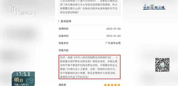 其次,自己也曾在广东省林业局官方留言板上提出问询,当地林业局的答复是:饲养北美赤狐不需要在林业主管部门办理人工繁育、出售、收购等行政许可。