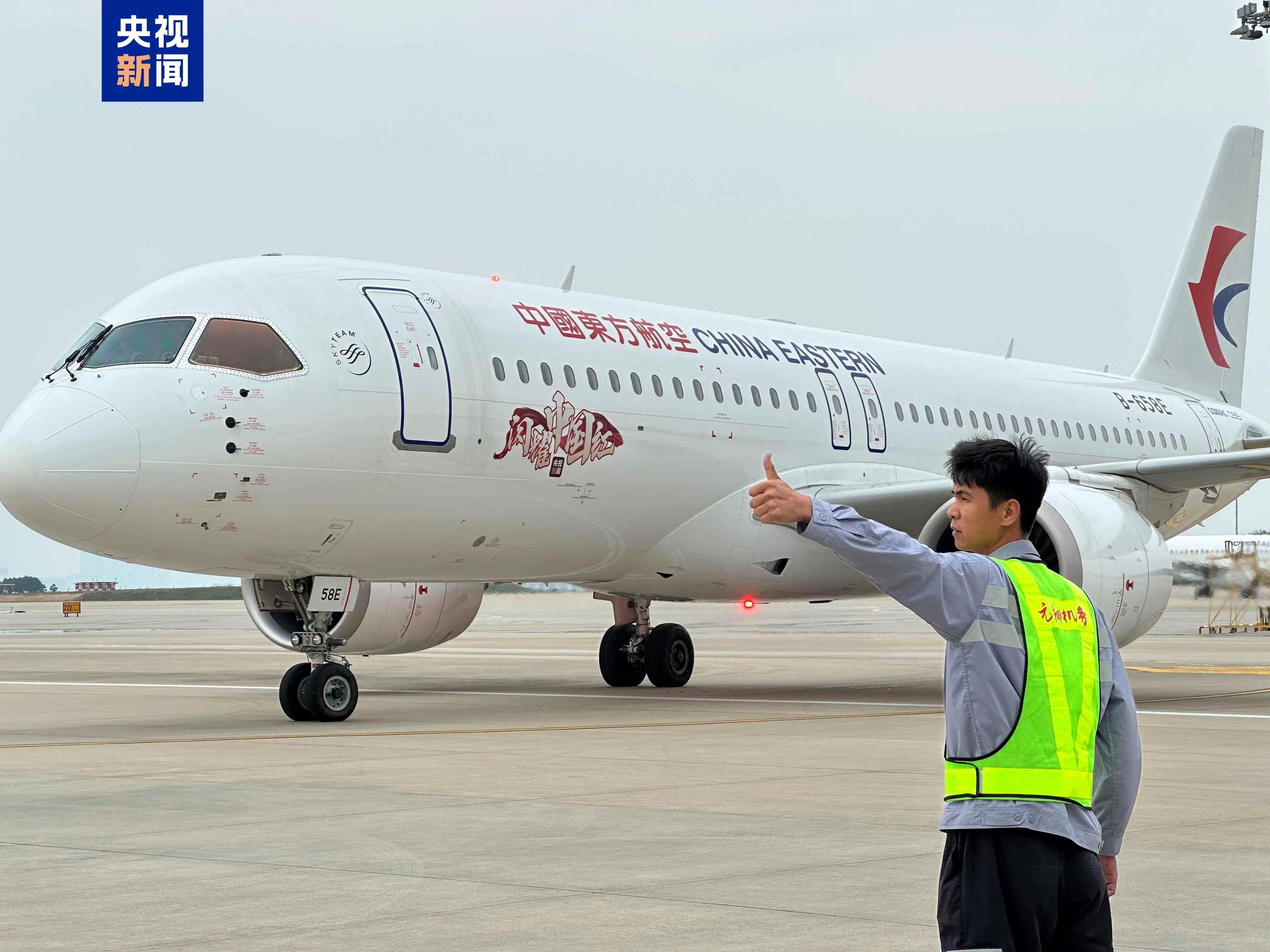 △2025年5月25日,国产大飞机C919执飞MU5247航班从上海虹桥机场出发,搭载着148名旅客抵达厦门高崎国际机场,完成厦门首航。