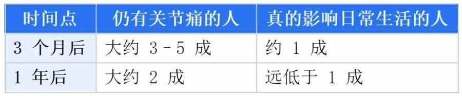 A:大多数人,6 – 12个月内疼痛越来越轻,最后“想起来才隐隐痛”。