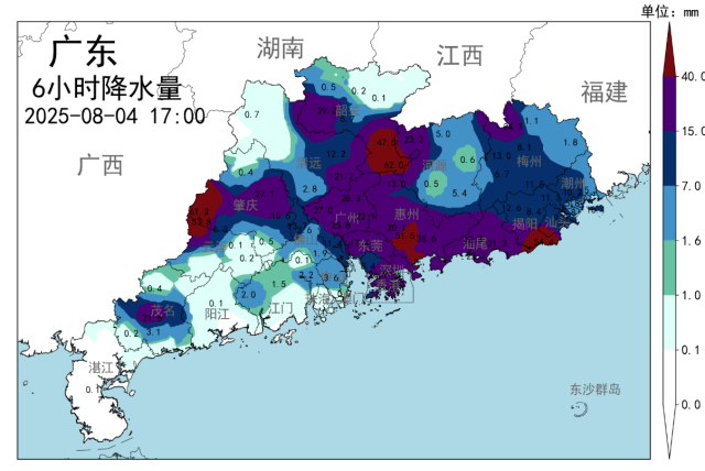 根据气象部门预测,5日至6日广东仍有暴雨到大暴雨局部特大暴雨,雷雨时局地伴有8级左右短时大风;7日起降水减弱。