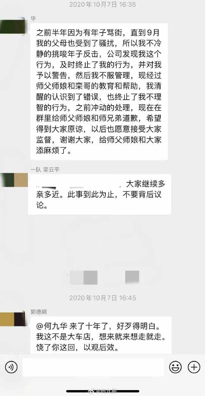 公司后来找他求证,他顾左右而言他;领导反复追问,他也没有正面回应,甚至私下在微信里和师父说“不干了”,最后被师父拉黑并踢出公司大群。
