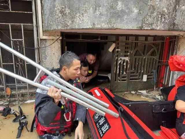 惠州惠东平山街道大片房屋被淹没,民警徒手架起生命通道。