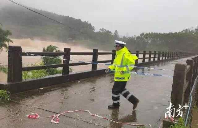佛冈交警在道路拉好警戒带,对过往车辆进行引导和警示。佛冈县公安局供图