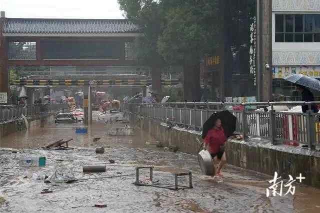 下午13时,工作人员正紧张地进行排水作业,力争尽快恢复涵洞通行。环卫工人、社区居民、商铺老板与坑口街道、桂城街道等单位的工作人员,一起手持扫帚、铁锹等工具,清理路面上的淤泥和垃圾。