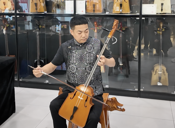 走进内蒙古兴安盟乌兰浩特市兴安领创展示体验中心,旺盛正饶有兴致地为大家演奏马头琴乐曲。