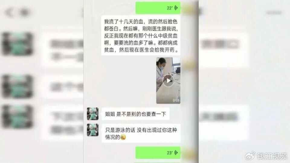 浙江桐乡的龚女士向记者反映称,两个月前自己例假刚结束就去学游泳,游完后,当天夜里大出血,后来住院做手术。她认为这个事情要怪游泳馆没有尽到提醒义务,办卡时也没告知要例假结束后过几天才能游泳。