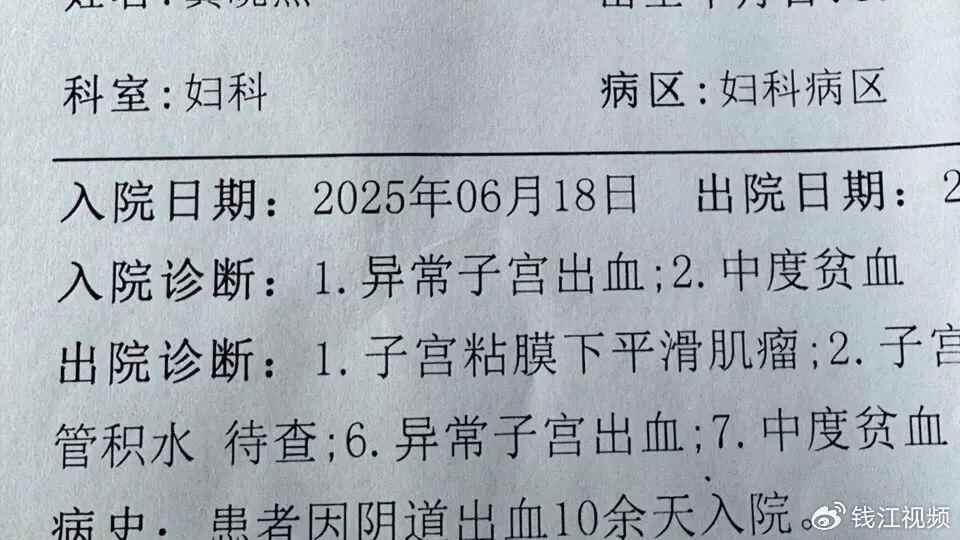 6月18号,龚女士住进了桐乡市第一人民医院,检查显示龚女士子宫异常出血,中度贫血,并且有肌瘤和息肉,住院4天花了七千多。龚女士认为,弄成这样绝对和游泳有关,因为游泳馆工作人员没尽到提醒义务。