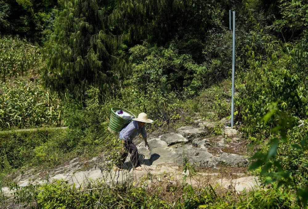 7月30日,重庆涪陵区百胜镇工作人员郭凤英对大山深处的古道遗址进行巡查。