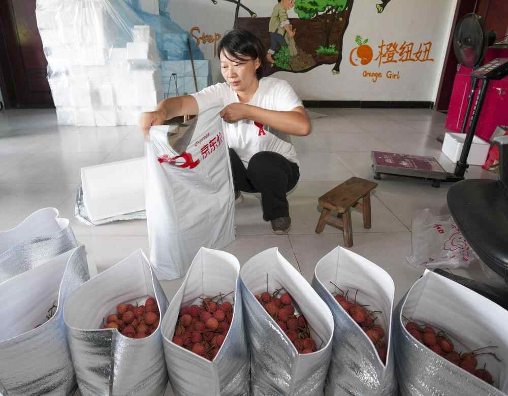 7月30日,重庆市涪陵区南沱镇睦和村村民汪登荣在打包新鲜荔枝,准备通过快递发给客户。