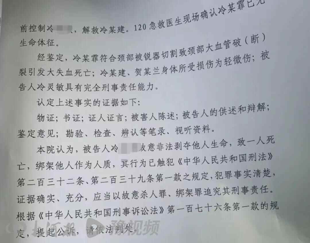 检方认为,被告人冷某敏故意非法剥夺他人生命,致一人死亡,绑架他人作为人质,犯罪事实清楚,证据确实、充分,应当以故意杀人罪、绑架罪追究其刑事责任。