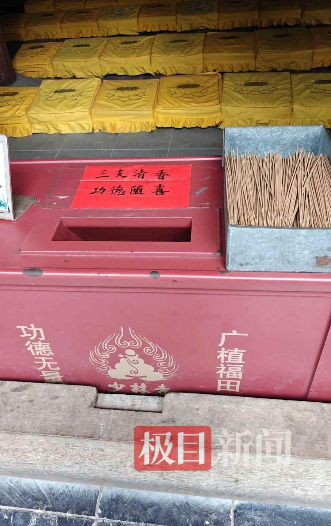 多年以来,许多网友在社交平台吐槽,少林寺每进院落几乎都有付费的请香处,有点“太商业化”了。多位寺内工作人员在摊位前卖香,价格从几十元到几百上千元不等。虽然一直以来功德箱上都有免费的清香可以领取,但为了图个彩头,许多游客还是选择在摊位买香。