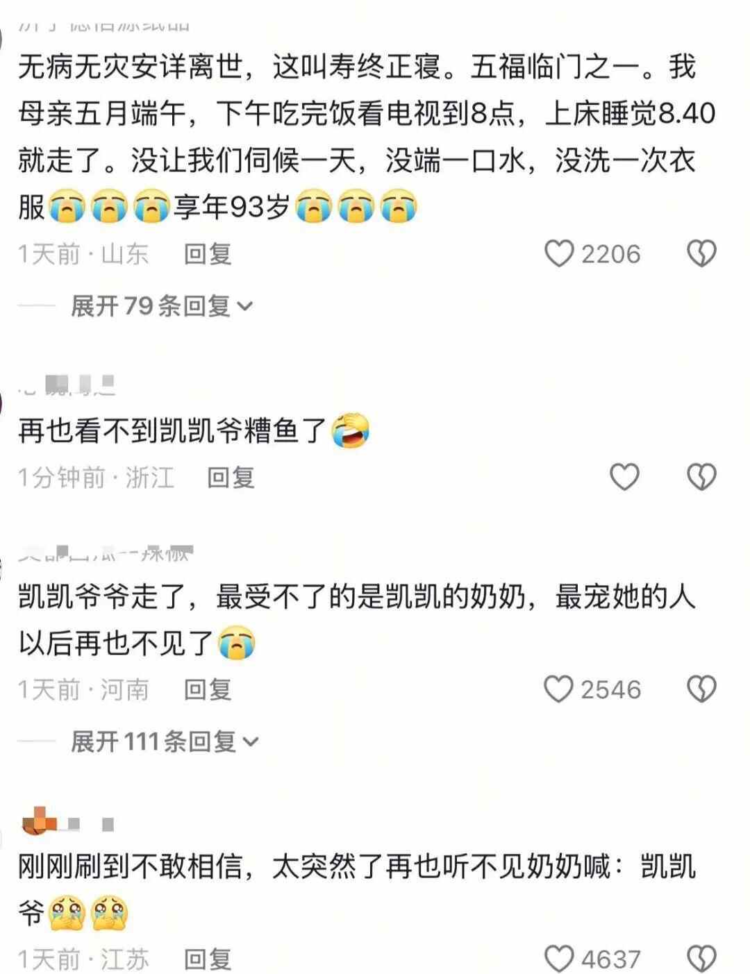 网友表示,无病无灾安详离世,凯凯爷爷是寿终正寝。