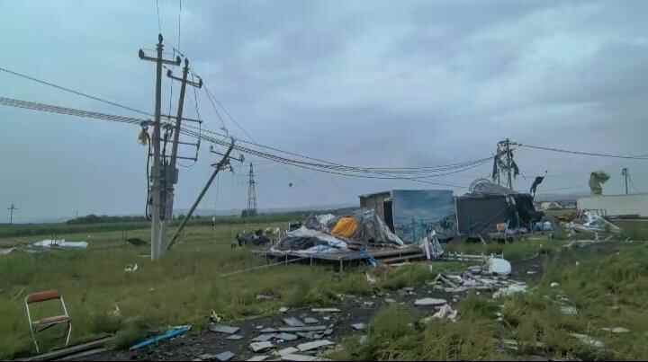 8月4日,内蒙古乌兰察布察哈尔右翼后旗乌兰哈达苏木突发龙卷风,当地有蒙古包被吹倒,有电线杆倾斜。