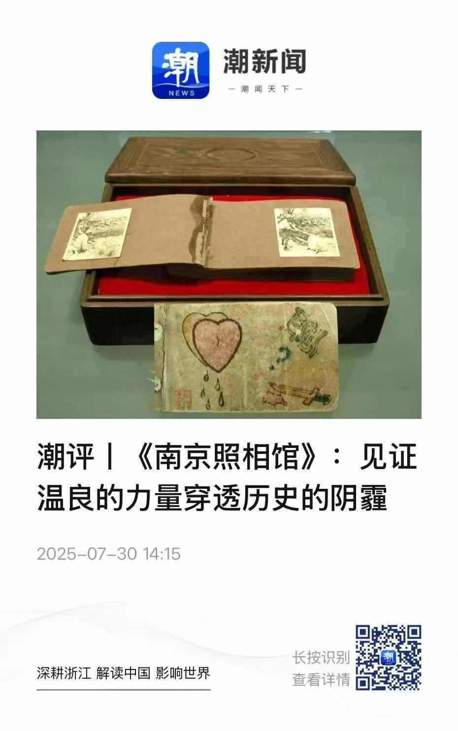 浙江日报:《潮评丨〈南京照相馆〉:见证温良的力量穿透历史的阴霾》