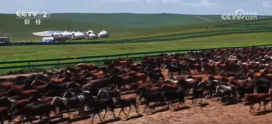 草原上,300余匹蒙古马在牧民的驾驭下如离弦之箭冲出,鬃毛飞扬、四蹄翻腾。