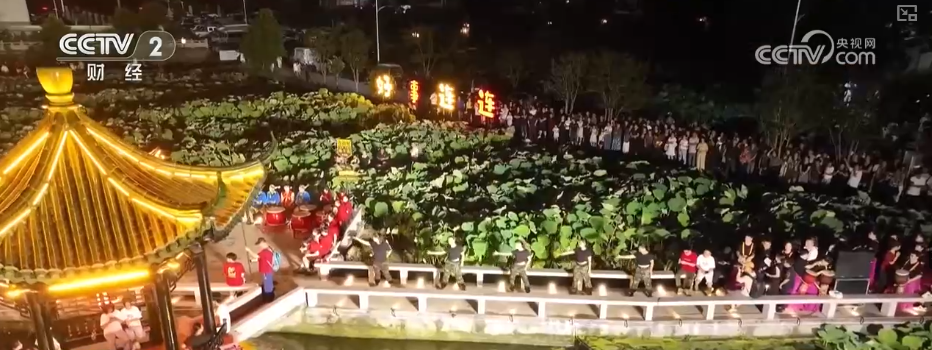 乡村烟火浓,浙江各地因地制宜推出特色夜市。温岭市大溪镇方山村打造荷塘灯光秀,吸纳本村及周边村庄约600人就业。