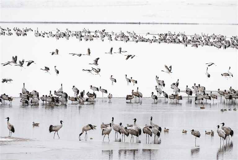 近年来,随着自驾游客的日益增多,生态保护也面临着新的课题。去年,申扎县专门组建了“雪之傲影”团队,打造一支专业生态保护尖兵,构建“空中无人机巡航+地面智能检测+队员徒步巡逻”的全方位防护网络。同时,每年重点时期开展“保护黑颈鹤家园”主题宣讲等,展示展出色林错国家级自然保护区内的珍稀野生动物影像资料,向游客宣传野生动物保护知识。