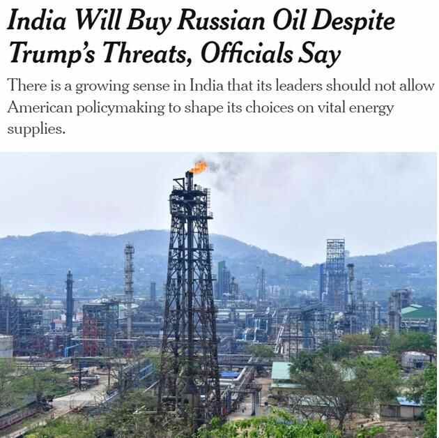 从经济角度,俄罗斯石油的价格与质量合乎印度自身的需求,没有理由花高价格从美国或其他国家购买石油。