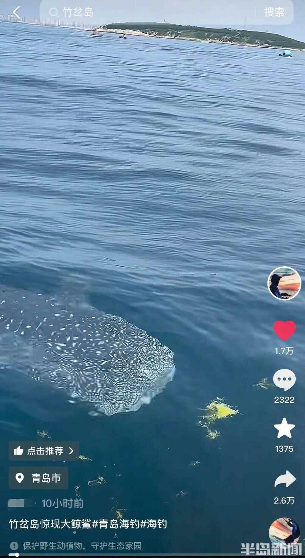 一位名为“章子鱼”的网友分享自己在马尔代夫浮潜时曾看到过大鲸鲨,体长十几米。“没想到青岛近海也能看到了,说明水质很好,水温也高了。”