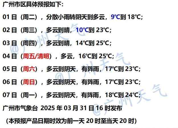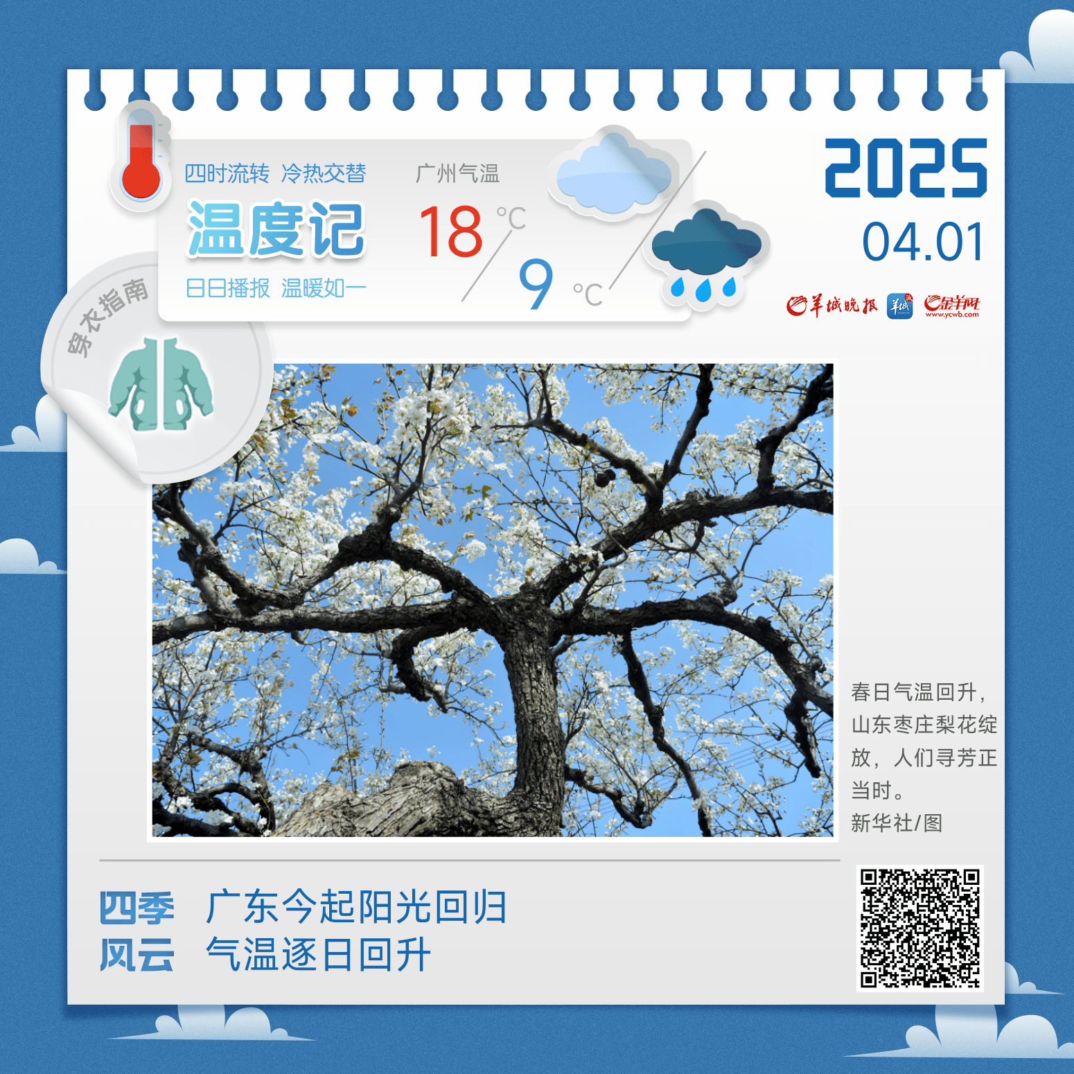@广东天气预计,4月1日白天—4月3日,广东省大部阴天转多云到晴天,气温逐日回升。昼夜温差加大,早晚依旧寒凉。