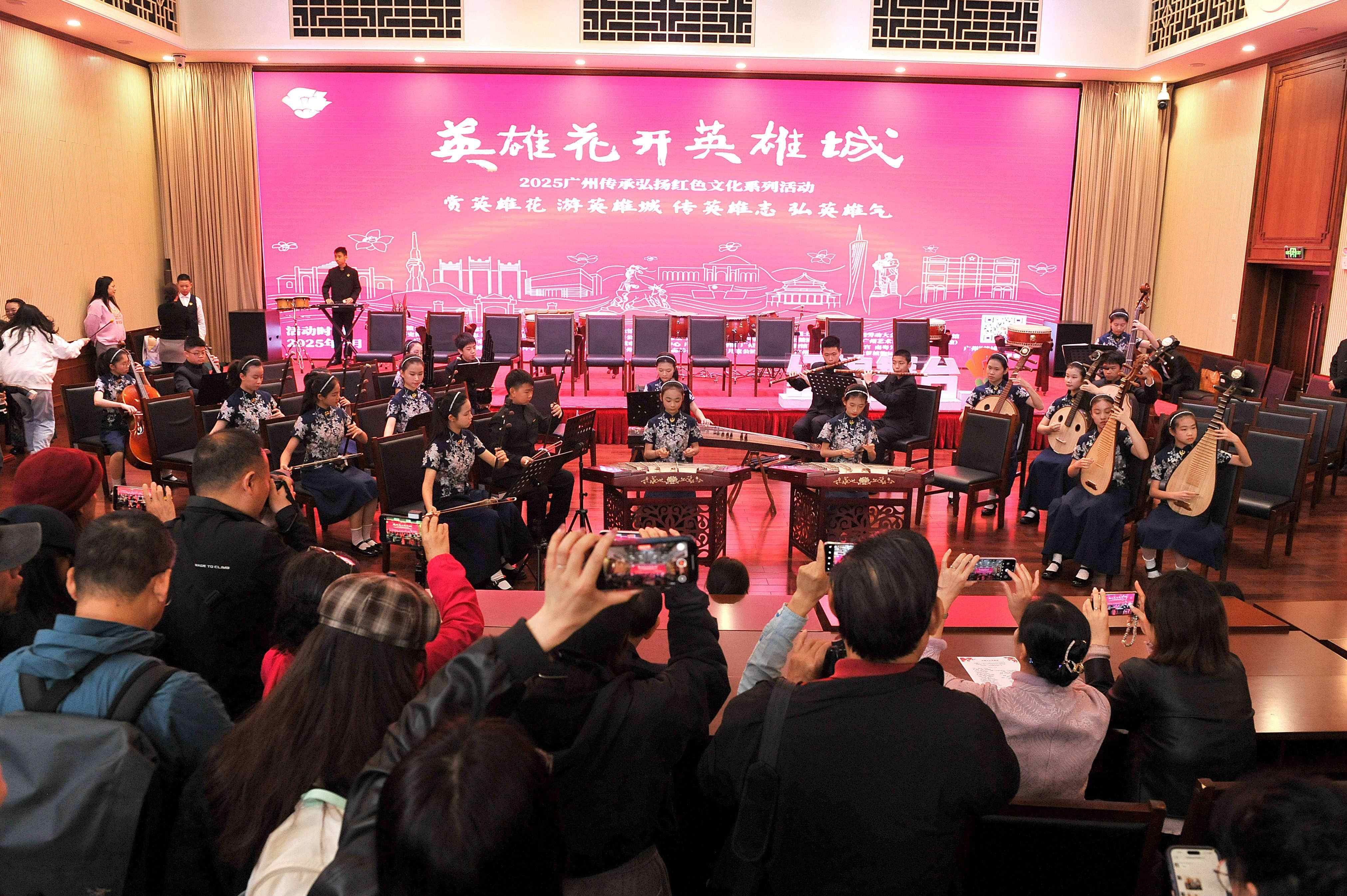 3月29日上午,"英雄花开英雄城——2025广州传承弘扬红色文化系列活动"专场展演在广州华侨博物馆震撼上演。本次活动由广州市委宣传部、市教育局指导,广州市教育局、广州市延安精神研究会主办,越秀区少年宫承办,通过民乐演奏为核心载体,融入粤语吟诵等多元艺术形式,生动展现红色文化与广府文化的交响共鸣,吸引了过百名市民游客共赴这场“声”入人心的文化盛宴。