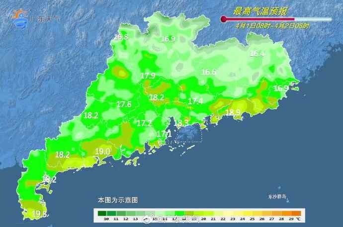 ◆预计4月1日,广东大部分散小雨转多云,气温逐日回升。最低气温:粤北市县8~10℃,其余大部分市县10~13℃。